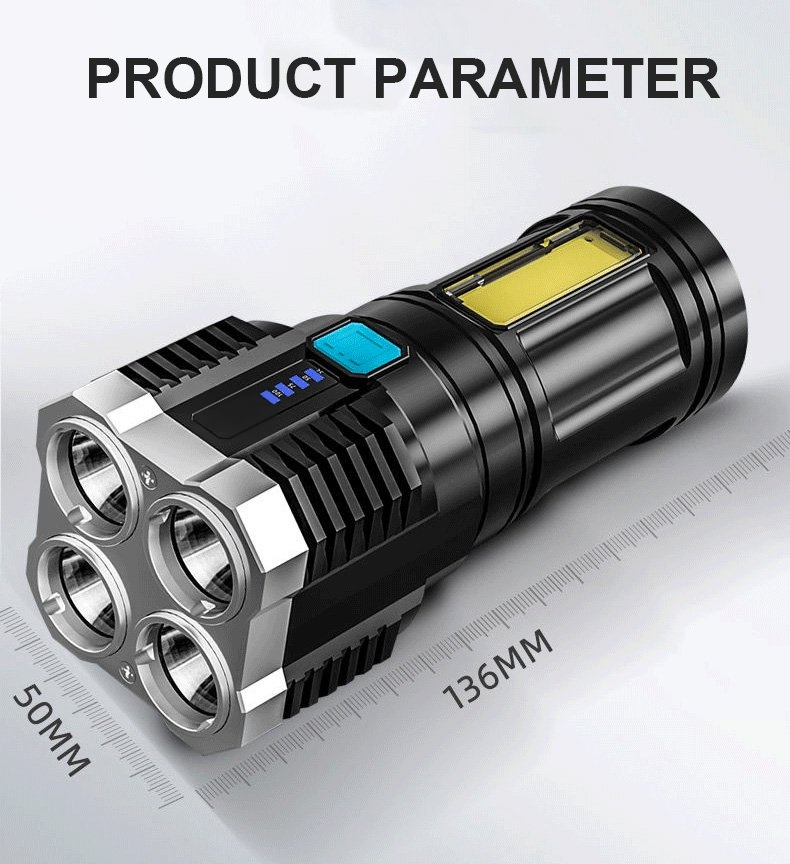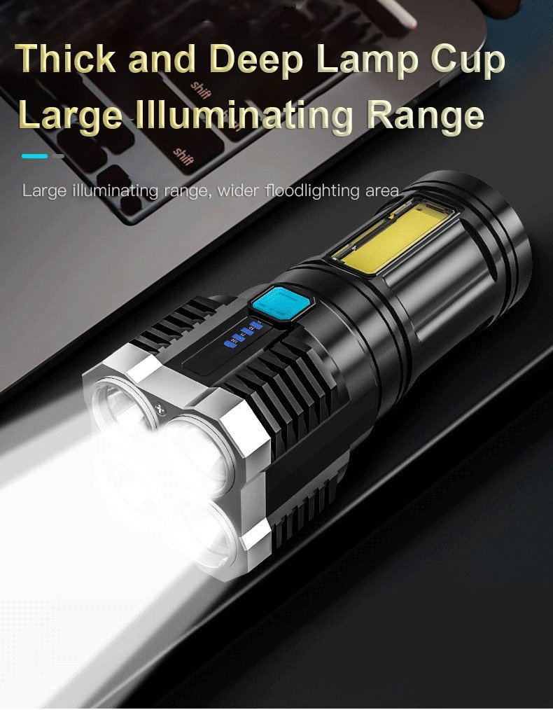 Four-eyes strong light USB charging flashlight