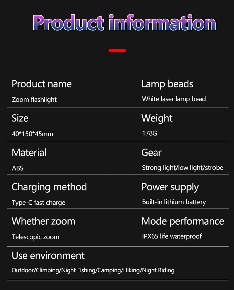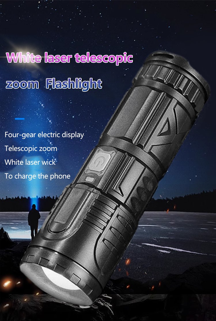 White laser telescopic zoom flashlight